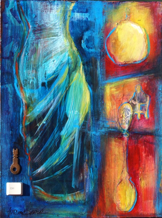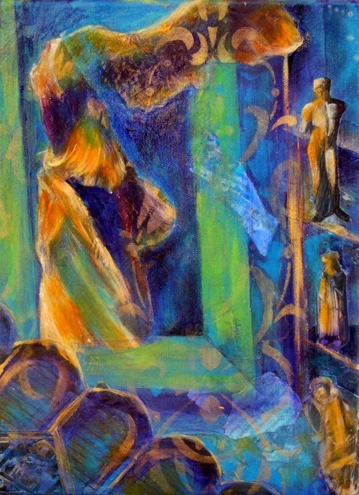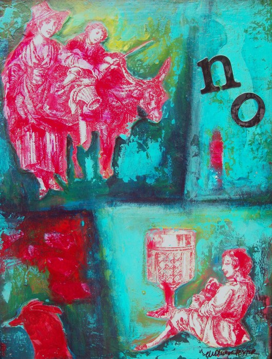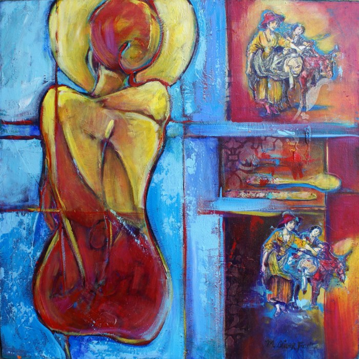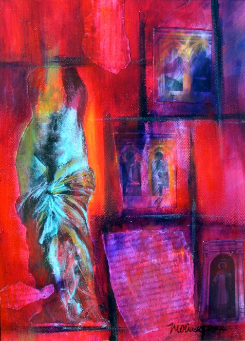 Domestics is a collection of work that references the search for identity within the marriage relationship. The process of using found images of classic sculptures or from traditional “Joie de Vivre” wallpaper motifs questions the standards by which we are measured.